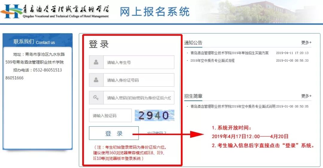 考生登陆青岛酒店管理职业技术学院网站,通过“2019年单独招生专栏”进入招生系统,缴纳费用并打印准考证。