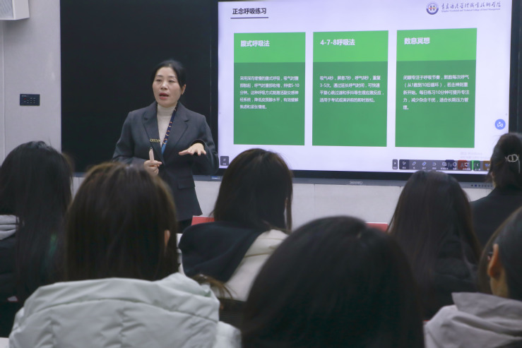 学院邀请学校心理咨询中心马晓晴老师开展了“新时代大学生压力应对指南”专题讲座,聚焦学业压力、社交压力等特色压力源,系统讲解了压力科学认知、情绪觉察、理性拆解等实用技巧。讲座引导学生树立“主动求助是勇气”的正向认知,既不逃避也不焦虑,用理性拆解难题,用接纳拥抱情绪,提升压力应对的科学性与主动性。