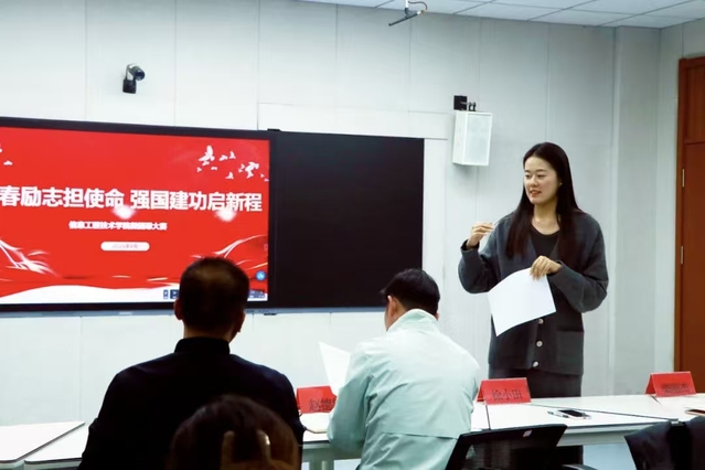 传递奋进力量比赛现场,16位参赛选手紧扣大赛主题,立足青年视角,以鲜活案例、真挚情感、饱满状态展开宣讲。他们将青春理想与强国建设、民族复兴紧密结合,语言流畅生动、台风端庄大方,部分选手结合个人实际经历增强宣讲感染力,充分展现出我院青年学子昂扬向上的精神风貌与坚定的使命担当。每一场微团课都传递着青春正能量,引发在场师生的强烈共鸣。